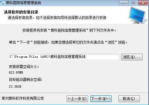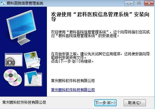 在pc下载网,下载君科医院信息管理系统中文版软件包,解压,运行“exe.文件”