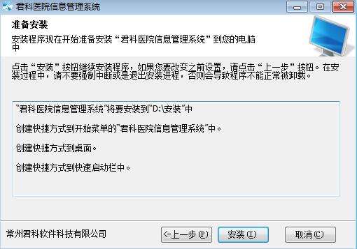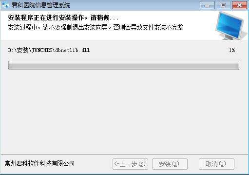 君科医院信息管理系统中文版正在安装,耐心等待一下