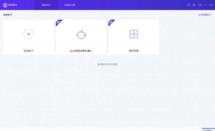 2、打开RPABOT,开始制作企业微信发送文本的机器人(以模版新建为例)