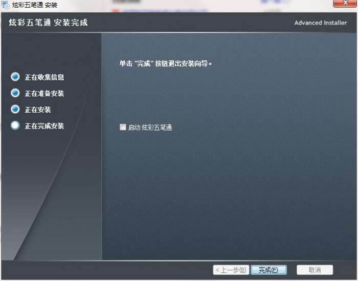 6.点击完成,炫彩五笔通软件安装成功