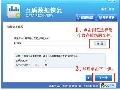 五、选择一个盘存放需要恢复出来的文件,然后单击下一步。