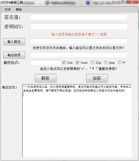XXTEA解密工具官方版是一款非常优秀的解密工具。XXTEA解密工具最新版只支持标准版XXTEA算法加解密,支持文件目录和单文件的加解密,用户使用时需要注意加解密的输入和输出路径。XXTEA解密工具官方版还支持自定义格式,解析的格式可以手动设置,支持日志功能,XXTEA解密工具解除密码可以生成日志内容。