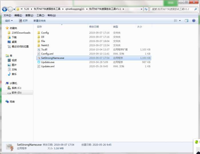 2.解压秋天NET快速强签名工具软件,运行“EXE.文件”