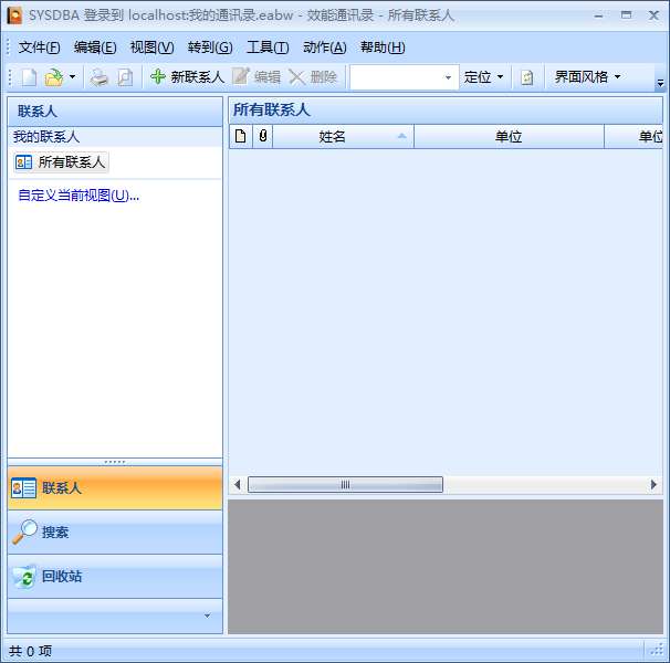按下“Ctrl+N”将显示新建联系人窗体;按下“Ctrl+O”将显示编辑当前选中联系人的窗体;按下“Ctrl+D”将把选中联系人删除并移入回收站中。