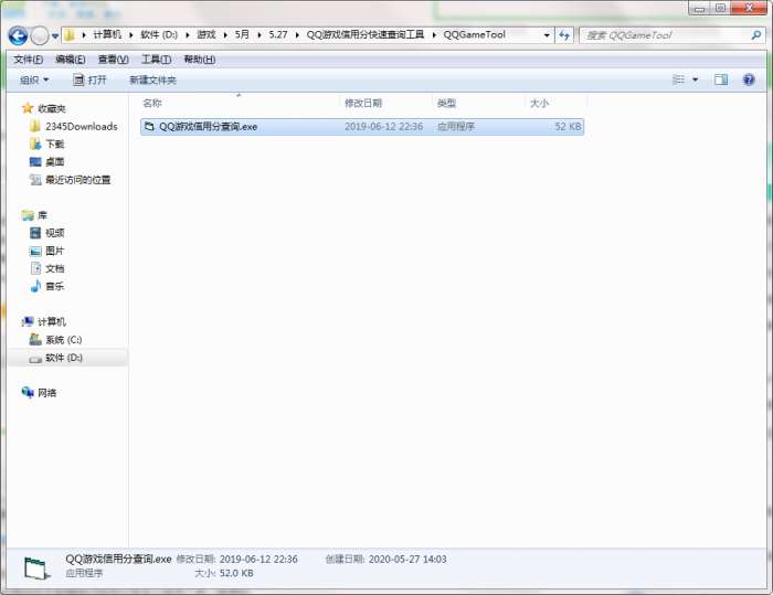 2.解压QQ游戏信用分快速查询工具软件,运行“EXE.文件”