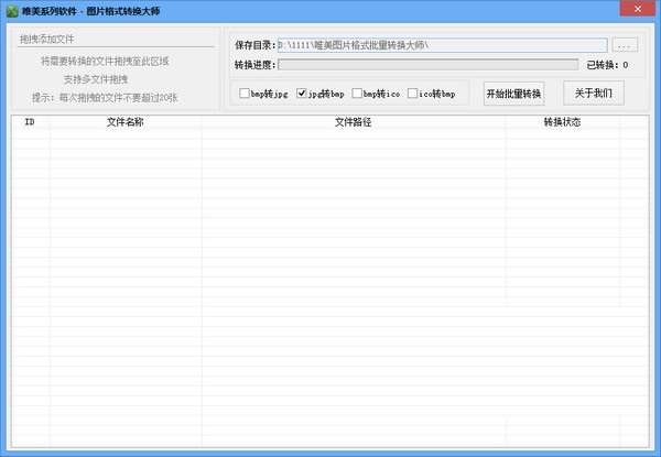 然后选择转换方式,如:BMP转换JPG、JPG转BMP、BMP转ICO、ICO转BMP,