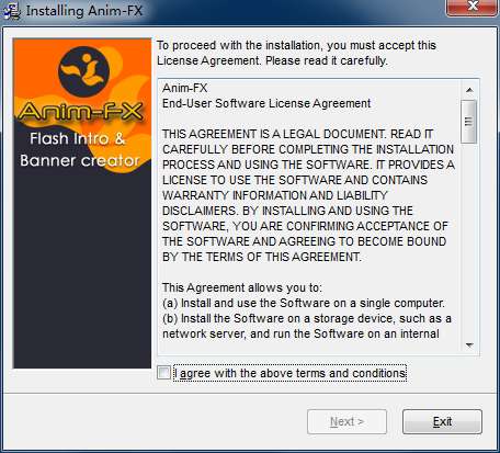 3.双击打开,进入Anim-FX软件界面,阅读安装许可协议,点击我同意,点击下一步