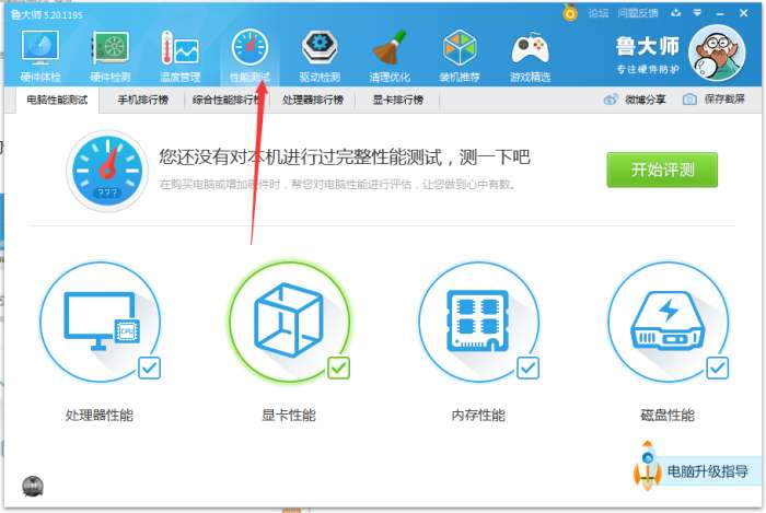 5、性能测试功能可以对电脑配置的性能进行评估