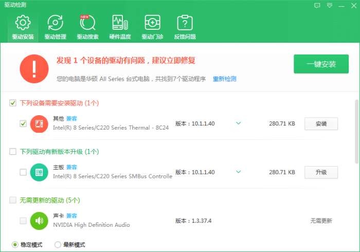 7、驱动检测功能,能够检测该电脑中的驱动是否需要安装和更新情况