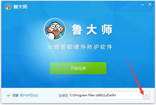 1、在PC下载网下载鲁大师的压缩包,解压后,双击exe文件,进入安装界面,点击图示箭头可以自由设置软件安装位置,建议大家选择安装在D盘