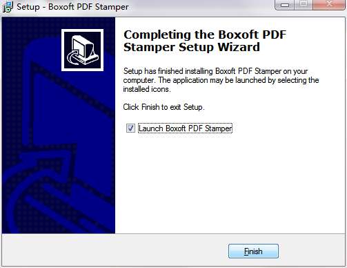 9.点击完成,Boxoft PDF Stamper软件安装成功