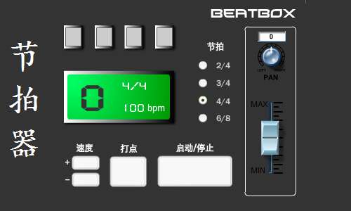 答:拉杆的上面标着 0、2、3、4、6 ,代表每个小节多少拍;比如2/4,4分音符为一拍,每小节2拍,那么就拉到 2,打出的节奏就是每两拍循环,6/8拍也是一样。