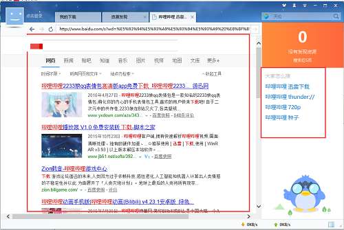 搜索结果:出现哔哩哔哩搜索结果,右侧出现相关推荐搜索信息