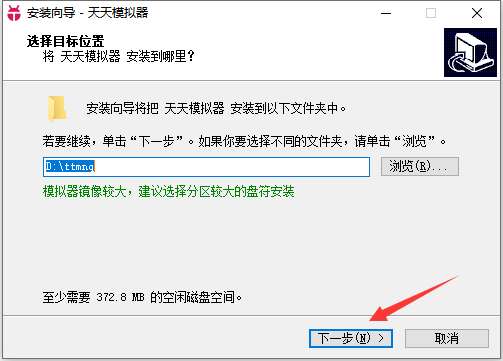 进入安装向导,选择安装位置,默认c盘,点击下一步