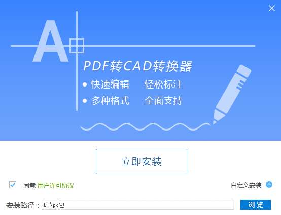 3.双击打开,进入PDF转CAD转换器软件界面,点击立即安装