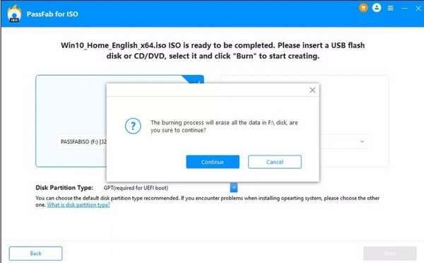 插入你的U盘或CD/DVD,然后选择它。这里我们选择USB为例。然后,在磁盘分区类型选项中,选择一个。然后点击刻录按钮。