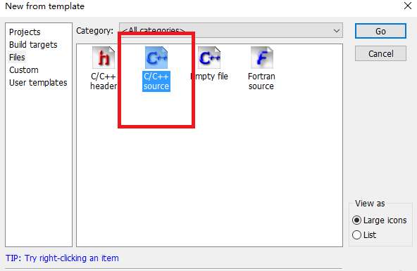 初学者都是c/c++入门,所以我们在这里点击c/c++,点击go按钮