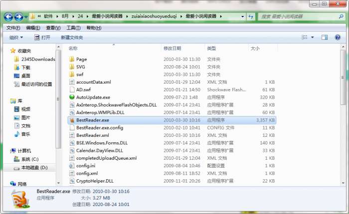 2.解压最爱小说阅读器软件,运行“EXE.文件”