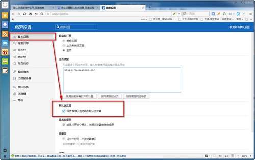 3、设置===基本设置===保持傲游浏览器为默认浏览器