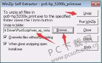 2、双击打开后通过选择browse选择安装路径,也可以选择默认设置为C盘,选择好路径之后点击unzip进行下一步