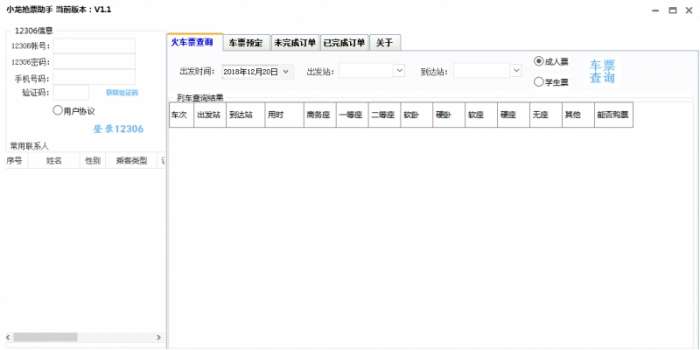 小虎抢票助手是一款能够协助客户抢到火车车票、动车票的电脑应用,该程序界面干净整洁、功能完善、便于入门,拥有这款手机软件,你也就能够十分轻轻松松的限时抢购到火车票、火车车票了,适用订单号查询、车票预订、火车查询等作用。