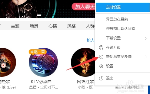 3、弹出了下拉菜单,选中“帮助与意见反馈”的选项