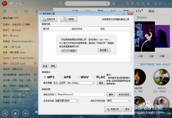 4、这里可以设置转化后音频保存的格式和文件保存的路径,一般新建一个专门保存转化文件的文件夹就可以了