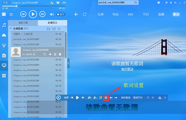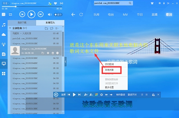 3、找到桌面显示歌词的编辑工具栏内的歌词设置,并点击,找到“本地关联”,并点击