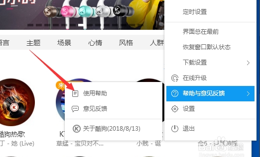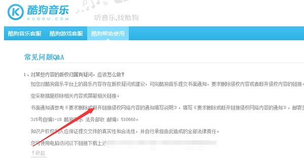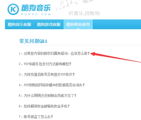 5、进入到了的酷狗帮助使用的选项中,点击了常见问题中一个