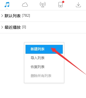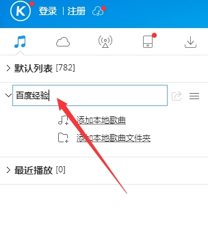 1、打开酷狗音乐播放器,在左侧列表当中,新建一个“新建列表”的选项