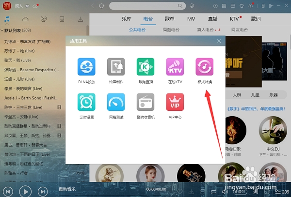 1、在酷狗音乐播放器的上方,有一个工具菜单命令,点击一下这个工具菜单
