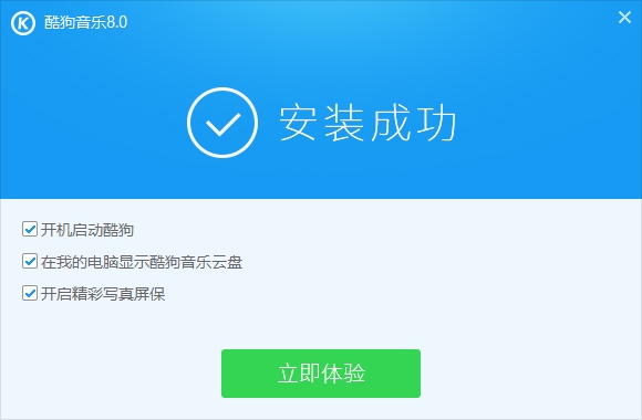 4、酷狗音乐播放器安装成功,点击“立即体验”即可
