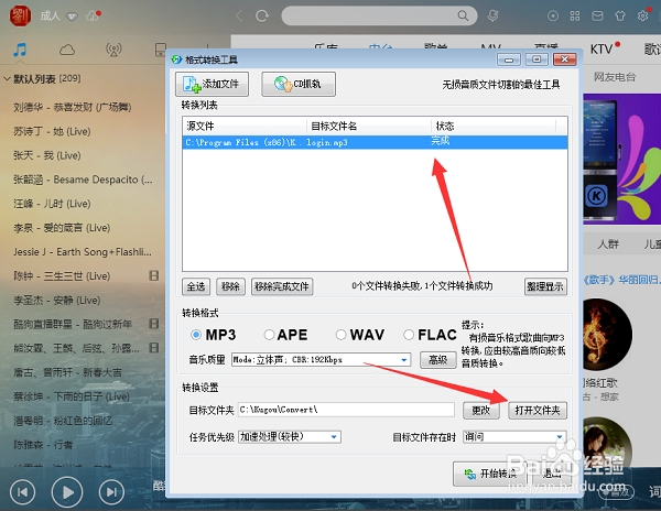 5、一起准备就绪开始音频的转化,转化完成在上方列表会显示转化的路径和状态的