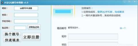 小宝qq靓号申请器是一款用于QQ号码的申请工具,您可以使用它来轻松的申请到QQ的各种靓号,软件主要采用的是官方的申请机制,可通过自动模拟人工操作,来任意的进行QQ靓号的申请,而且软件完全采用的自动无人值守操作,可自动提交申请,自动输入验证码,无需任何的手动操作即可获得大量的QQ靓号。如果对申请的号码不满意的话还可以直接切换号码哦。
