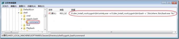 Windows Registry Editor Version 5.00 [HKEY_LOCAL_MACHINE\SOFTWARE\Classes\Directory\shell\RunCygwin\command]@="D:\\tmp\\tmp_dev_root\\cgwin\\bin\\mintty.exe -e D:\\tmp\\tmp_dev_root\\cgwin\\bin\\bash -c \"/bin/xhere /bin/bash.exe '%L'\""