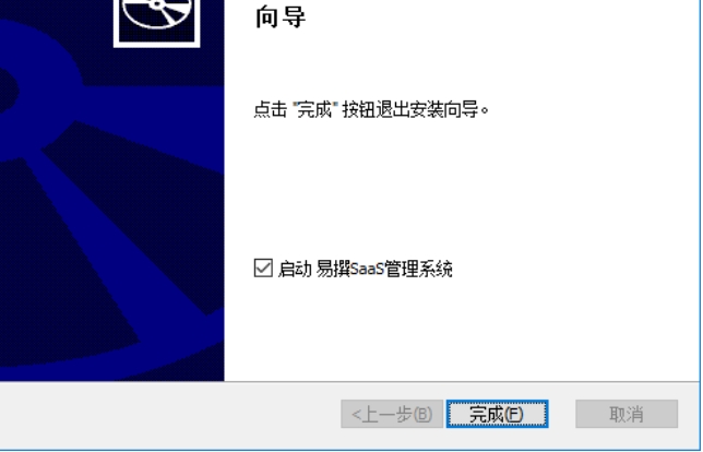 5、提示安装成功,点击完成就可以启动易撰SaaS管理系统