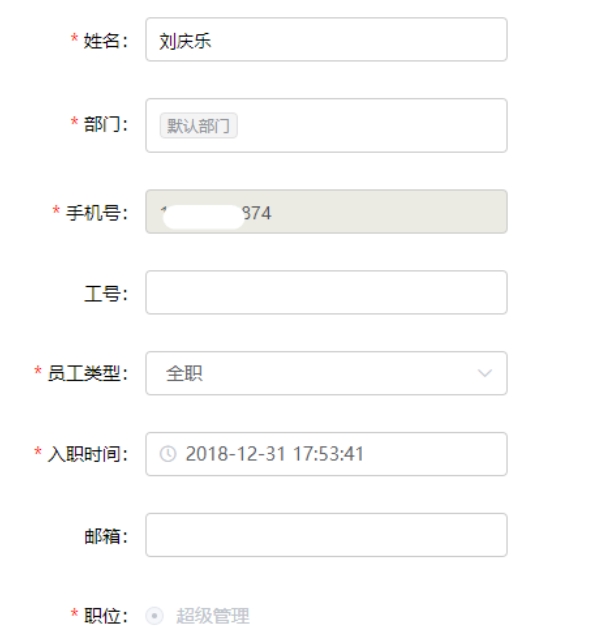 13、员工档案设置功能,可以显示工作信息、试用期:、岗位职级:、办公地址个人信息、身份证姓名:、出生日期、民族期