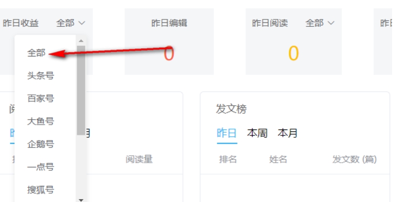 5、支持阅读数据查看,可以显示昨天发布的文章被阅读数量