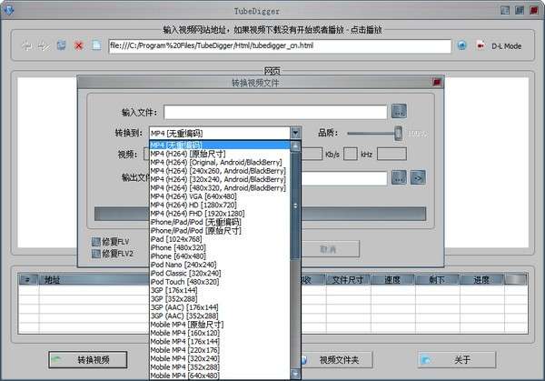 TubeDigger是一款功能全面的视频下载转换器,可以从任何网站上视频下载视频、实时流和节目。从VKontakte的自由和快速下载;综合媒体自由转换,下载的视频转换任何格式,包括便携式设备如iPod,iPhone , PSP ,手机。从下载的视频中提取音频。易于使用只需键入或拖动网页的URL包含所需的视频和下载将开始在几秒钟;支持的下载恢复和视频分辨率检测。支持通过SOCKS代理下载。