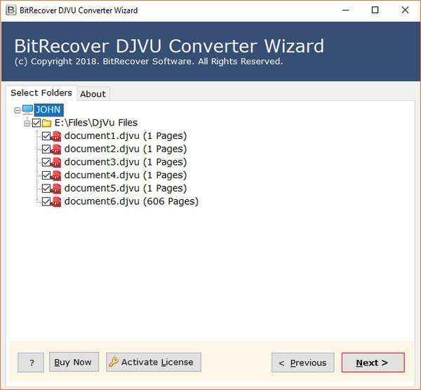DjVu 文件转换器软件提供双重选项来从计算机中选择 DjVu 文件,即选择文件或选择文件夹。通过这些选项,用户可以在一轮处理中选择单个或多个 DjVu 文件。这使得一次尝试就能为 DjVu 转换选择大量数据。最终,此功能使用户能够节省时间和精力。
