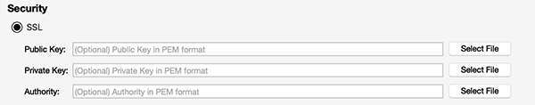 如果您想使用SSL连接到再分发服务器实例,您需要在第二个选项卡上启用SSL,并提供PEM格式的公钥。某些云服务的说明如下: