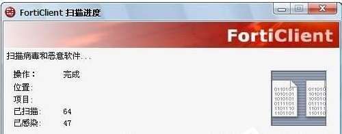 5、病毒样本实测环节,“飞塔”一共扫描文件64个,其中检测到病毒文件47个,具体耗时未知,因此该软件没有提供扫描过程自动计时功能;