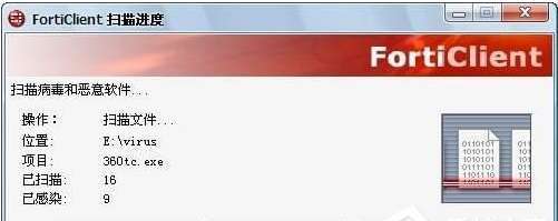 4、下图为笔者选择使用“飞塔”自定义扫描扫描位于本机E盘的一个病毒样本,由于笔者使用很很多杀毒软件,感觉“飞塔”的扫描速度相对而言慢了点,不过还行,不属于龟速的那种;