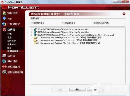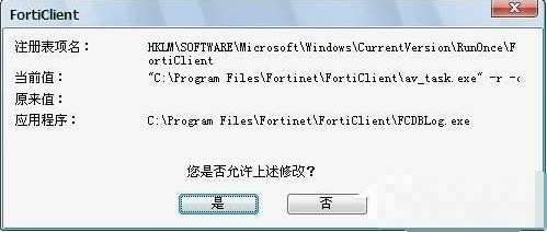 15、实测发现,“飞塔”可以监控系统注册表中的关键字段,如果这些关键字段被修改,那么“飞塔”会主动弹出相应的提示信息,在得到用户的授权下进行放行或者禁止运行,从而起到很好的防范作用。