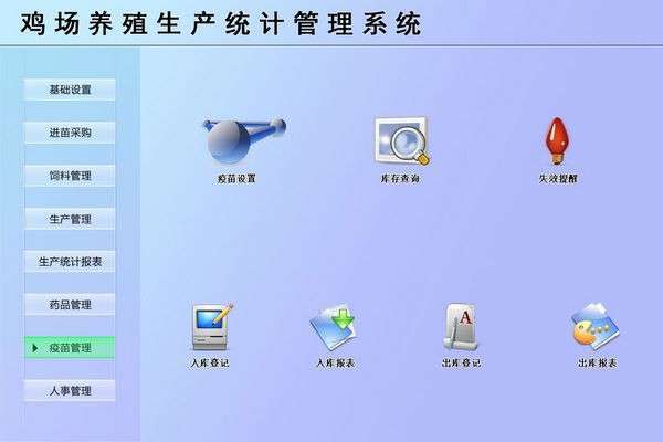鸡场养殖生产统计管理系统是一款非常不错的适用中小型养殖场的管理软件。主要包含进苗采购、饲料管理、生产管理等功能。本管理系统多处具有快速辅助录入功能,操作简单,易学、易用;处理功能高效强大,是协助您的好帮手!