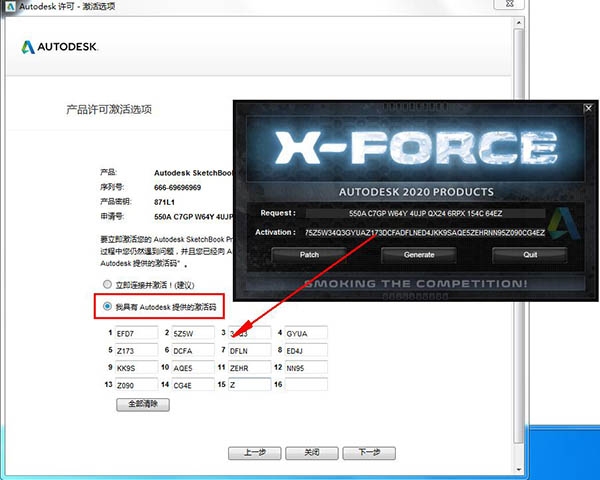 12、选择激活方式吗,选择我有激活码,将注册机中生成的激活码复制到激活界面,点击下一步即可激活。