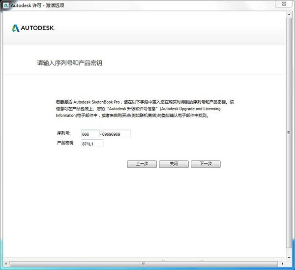 11、将刚刚的序列号和秘钥输入进去,点击下一步。
