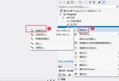 打开源文件菜单,选择“添加”-“新建项”(如图所示)。