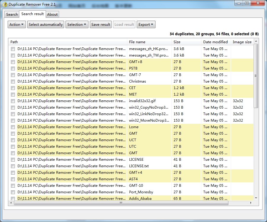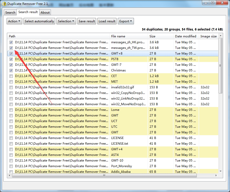在下一个选项卡上,可以看到搜索重复文件的结果。