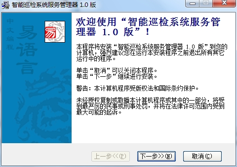 1、下载解压文件,找到智能巡检服务管理系统.exe,双击进入欢迎界面,点击下一步